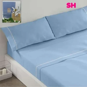 Claro de Luna 241 Azul Ribete Blanco Juego Sabana Burrito Blanco