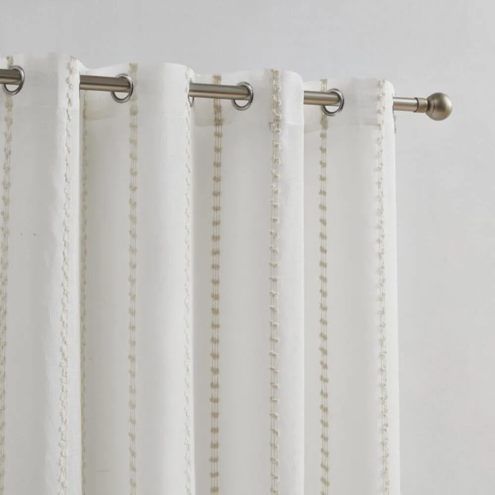 Visillo Decorativo Estilo Lino con detalles de rayas en chenilla de la linea Nature.